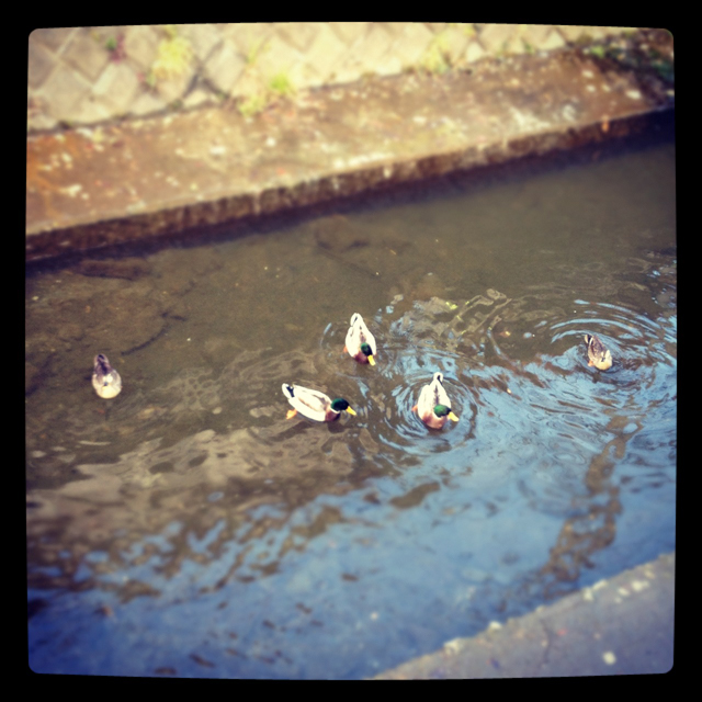 たまたまそこで餌をあげているおじさんがいたので、お話ししながら鴨見てました(大爆笑)